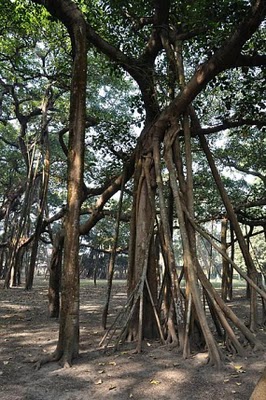 The Great Banyan Tree is a 250-year-old tree that covers about 14,500 square meters of land (3.5 square acres) in the Acharya Jagadish Chandra Bose Botanical Garden near Kolkata (Calcutta), making it the widest tree in the world. From a distance, the tree has the appearance of a forest, but what appear to be individual trees are actually aerial roots, around 2,800 of them.